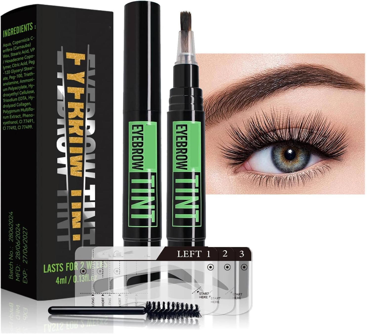 Eyebrow Tint, Eyebrow Tint Dark Brown, Dye Eye Brow Gel, Semi-Permanent 2 Weeks