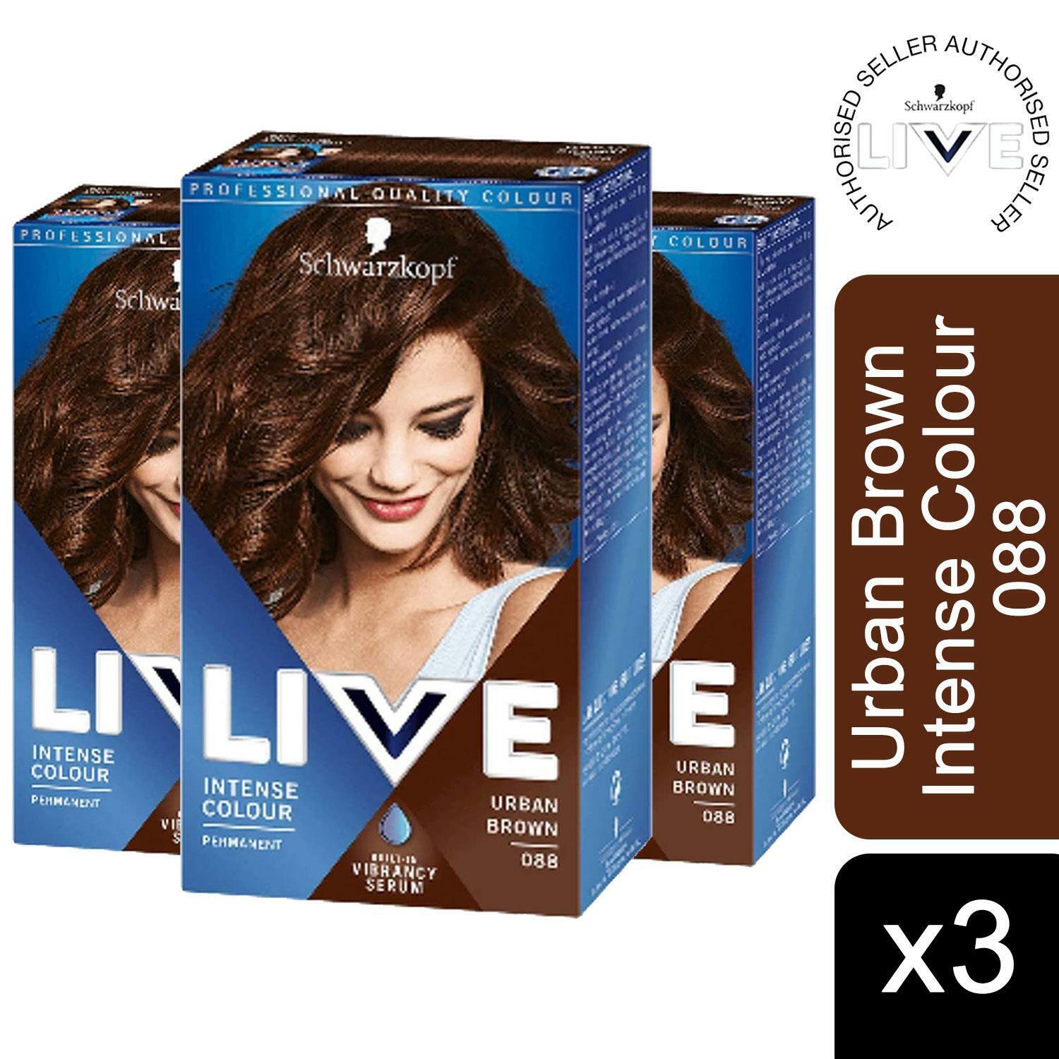 3x LIVE Urban Brown Permanent Hair Dye, Intense Colour 088