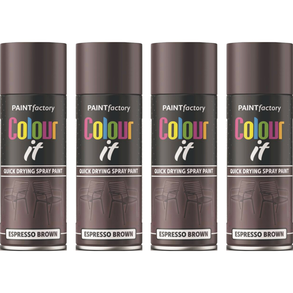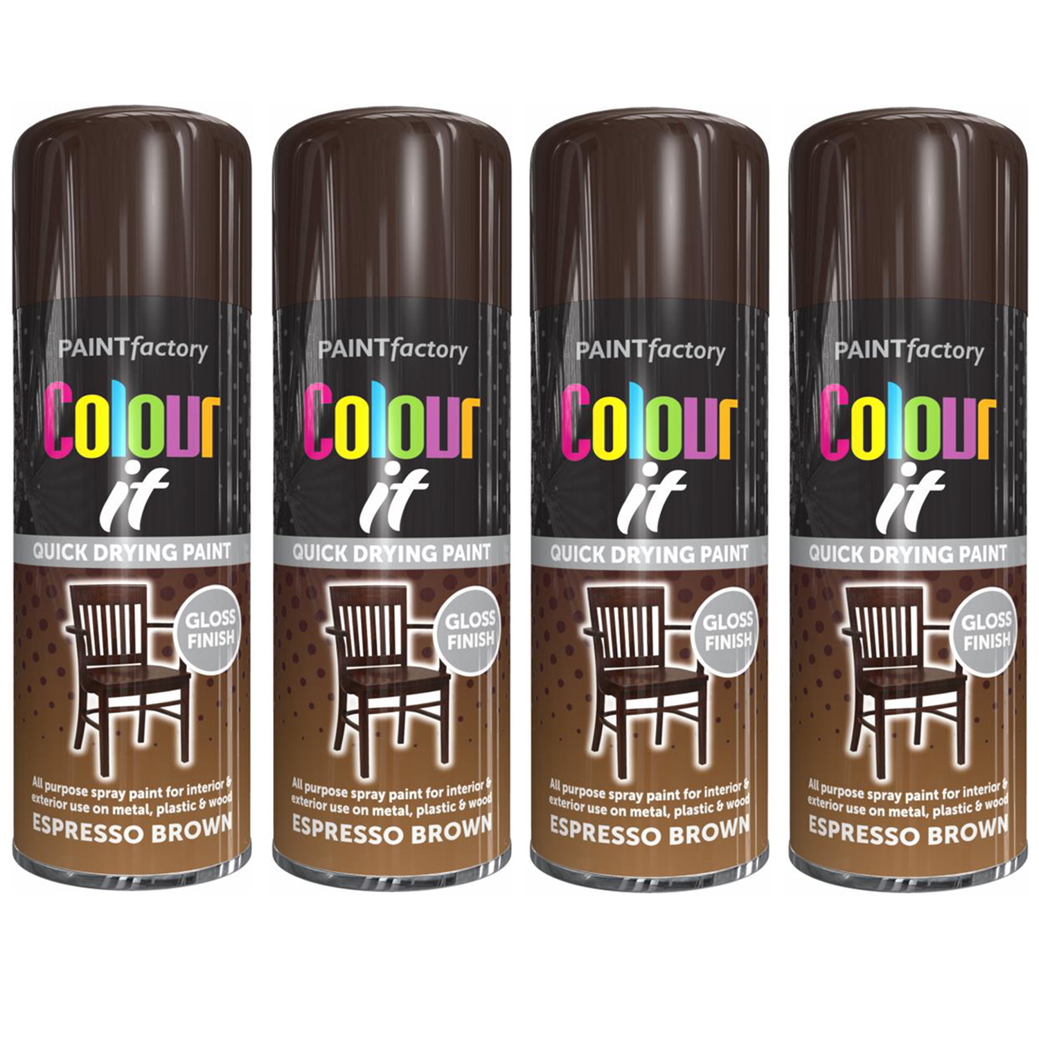 4x COLOUR IT Espresso Brown Spray Paint Gloss Metal Plastic Wood 400ml