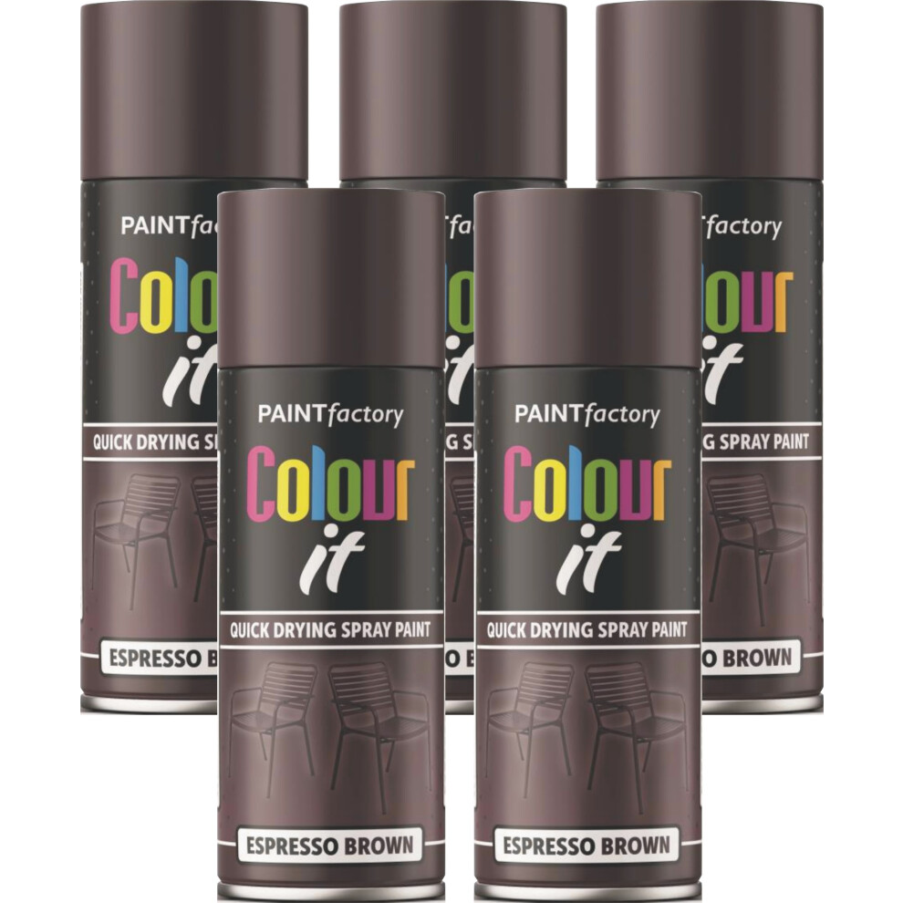 5x COLOUR IT Espresso Brown Spray Paint Gloss Metal Plastic Wood 400ml
