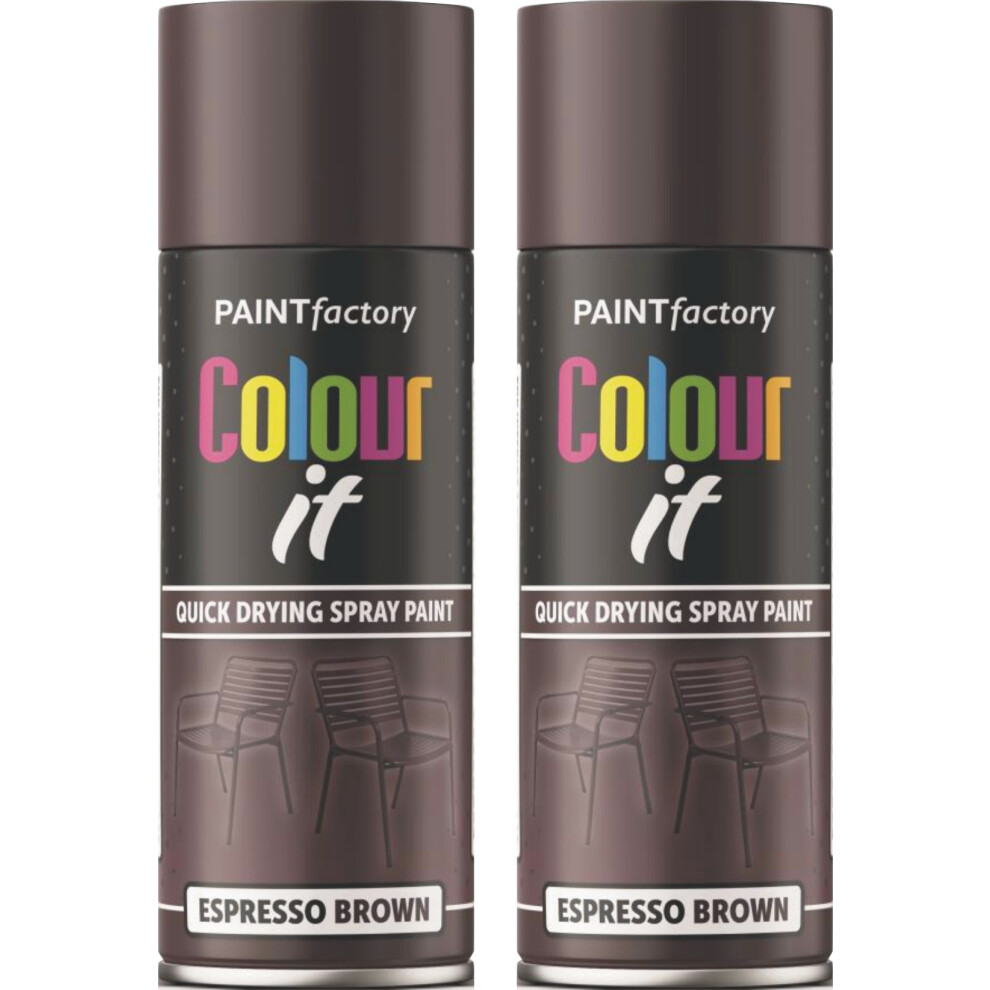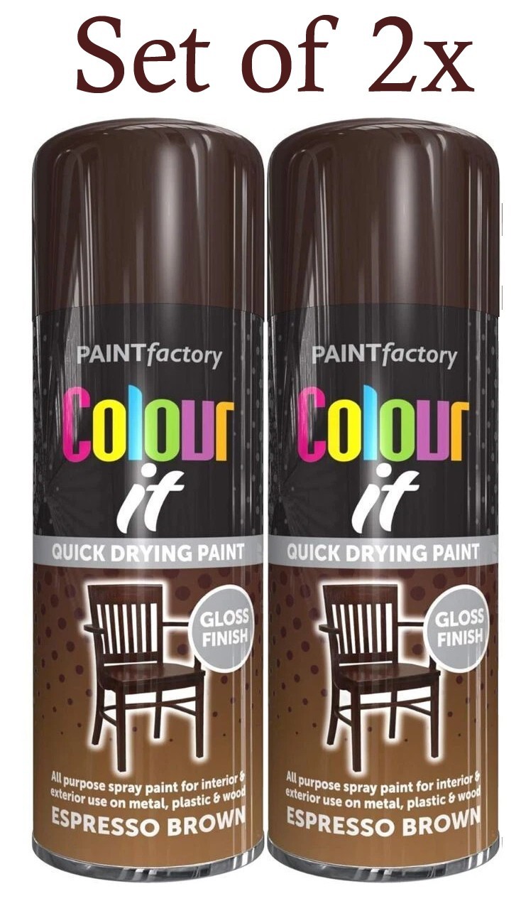 2x COLOUR IT Espresso Brown Spray Paint Gloss Metal Plastic Wood 400ml