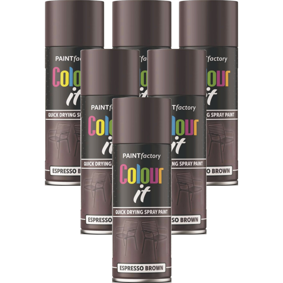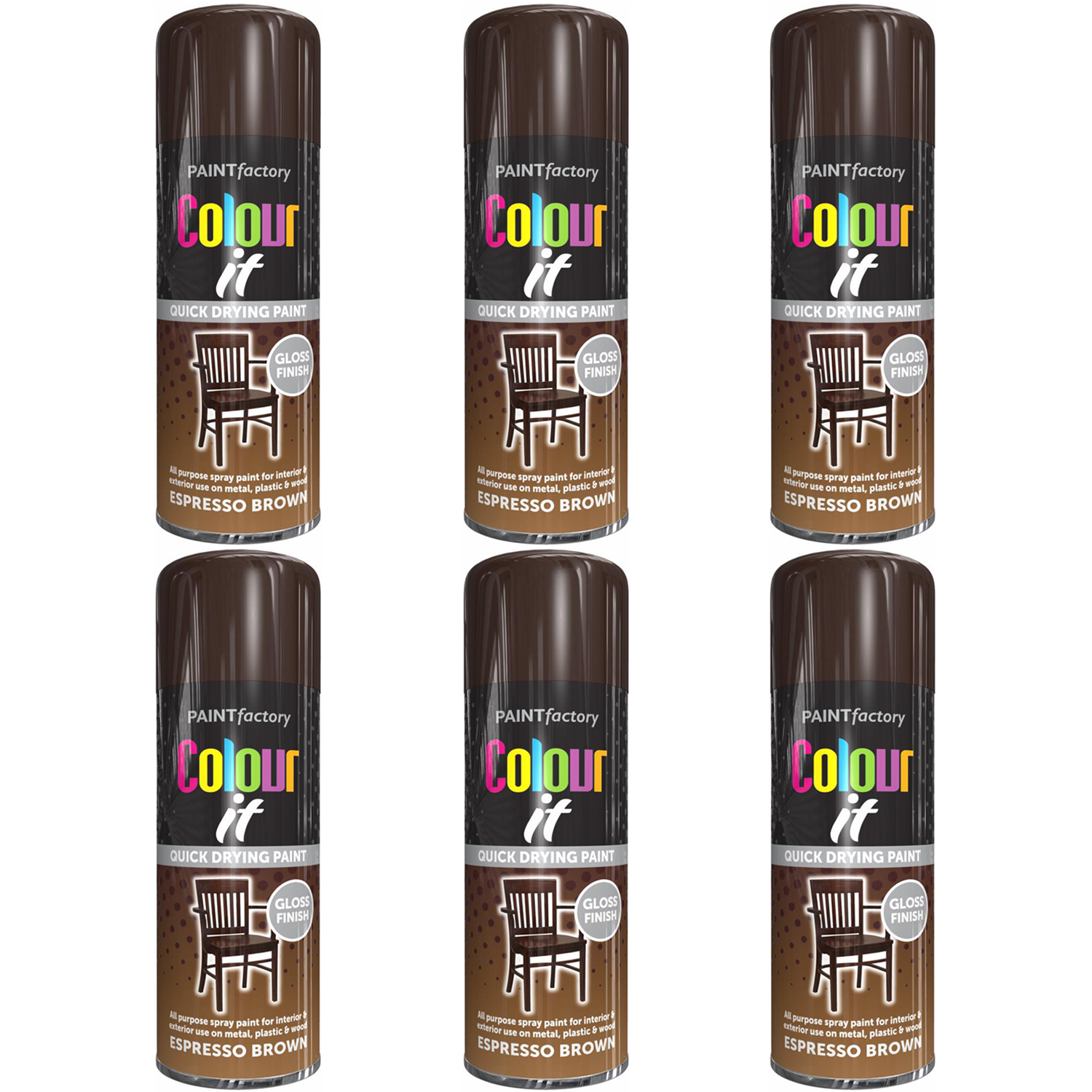 6x COLOUR IT Espresso Brown Spray Paint Gloss Metal Plastic Wood 400ml