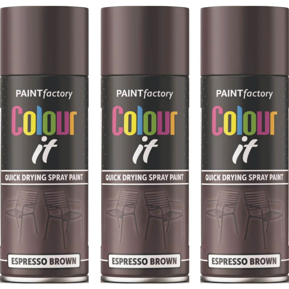 3x COLOUR IT Espresso Brown Spray Paint Gloss Metal Plastic Wood 400ml