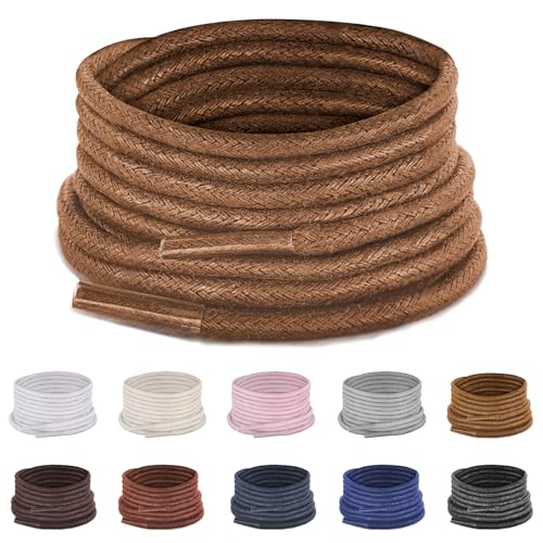 UamGlsob 4.5mm Round Cotton Shoelaces for Dress Shoes, Formal Oxfords & Golf Boots - Thin, Durable & Tear-Resistant Replacement Laces (Brown, 100cm)