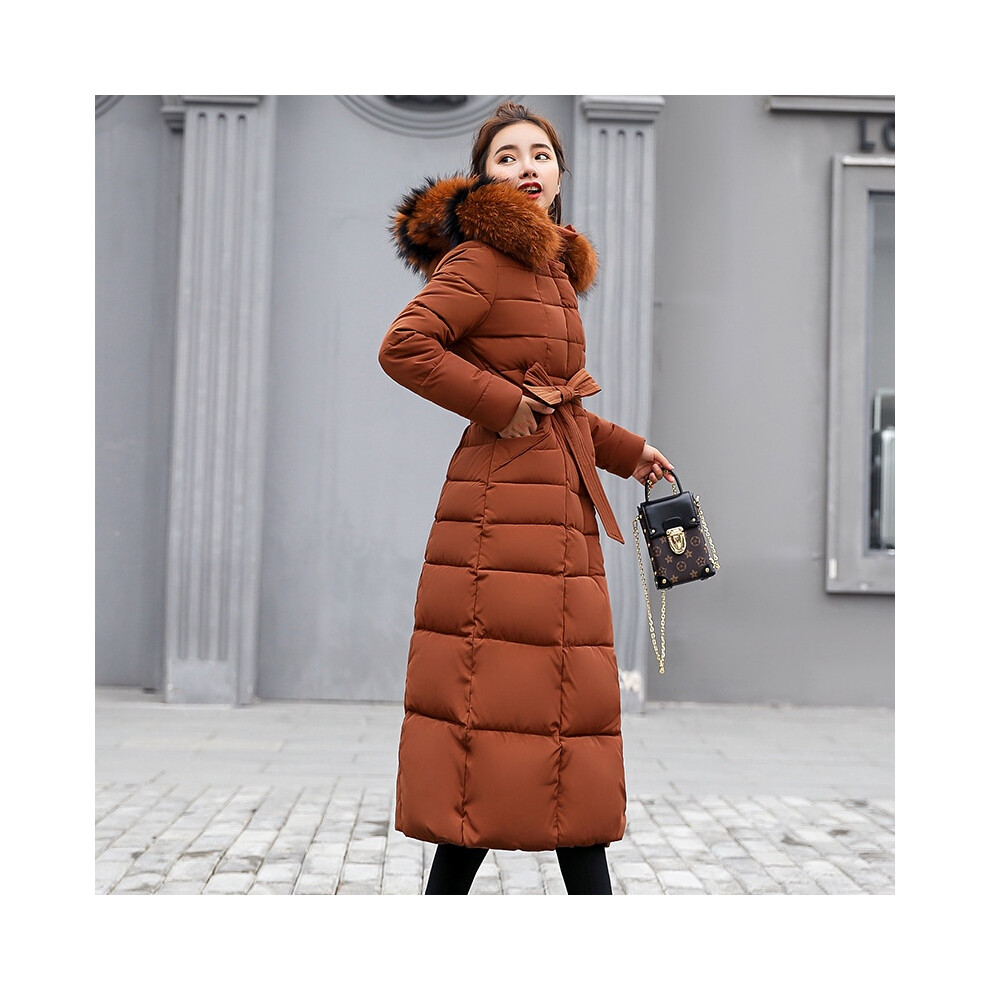 (Brown, L) Womens Down Jacket Winter Hooded Long Fur Collar Thicken Coat Parka Warm Outwear