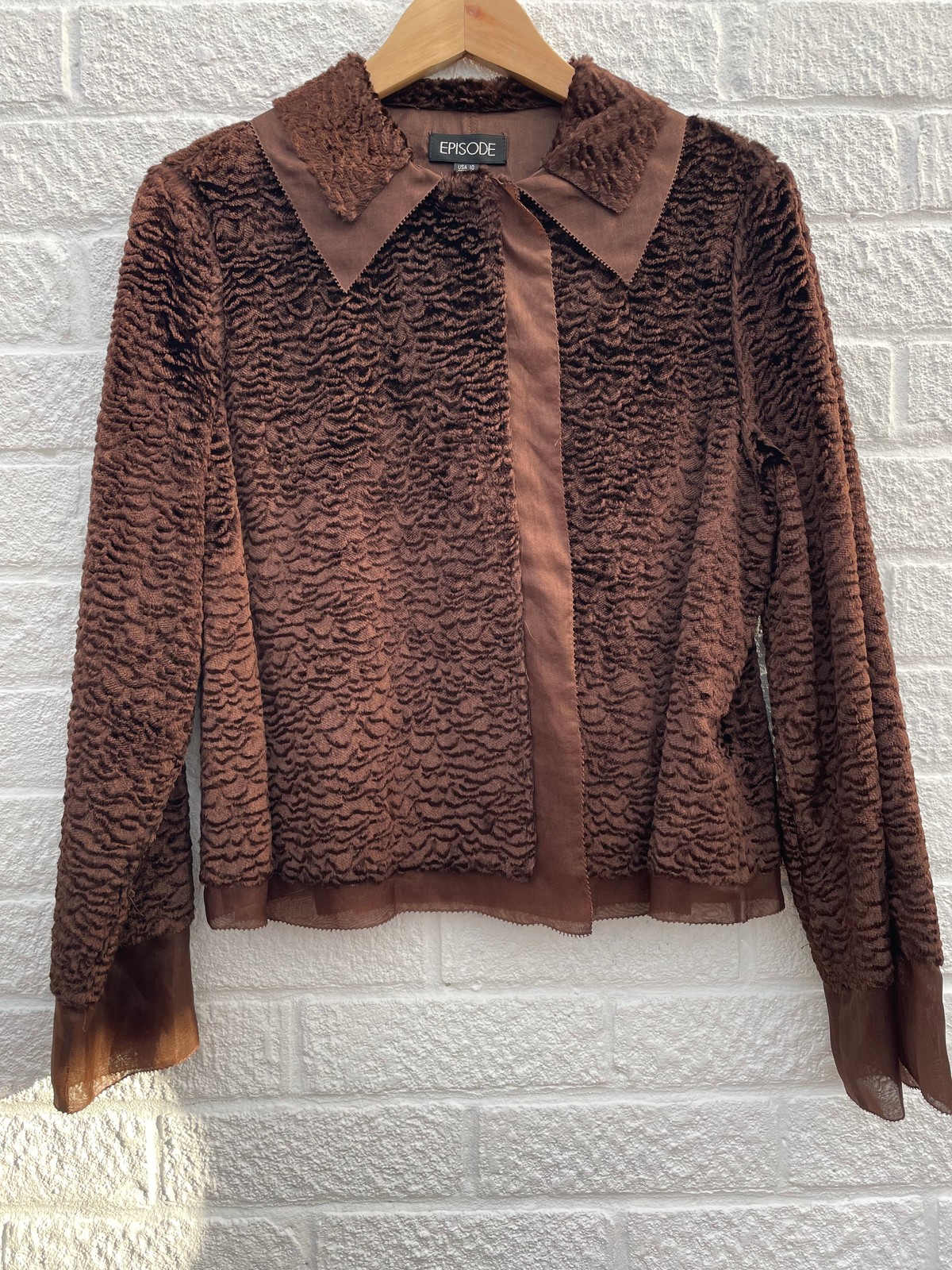 NWT Episode New Brown Faux Fur Collared Jacket Size UK 12