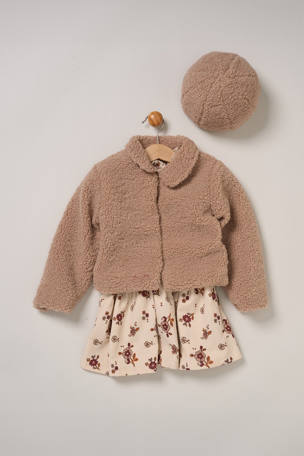 Miss Girls Fur Jacket and Dress Outfit Set - Brown - Size 1Y