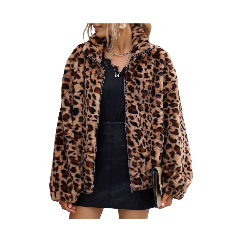 Nbzsmlkn Women's High Collar Fur Zipper Casual Jacket,Shaggy Warm Open Front Cardigan Coat Casual Long Sleeve Fluffy Outerwear,Women's Cropped Faux Fur Jacket (Brown,XL)
