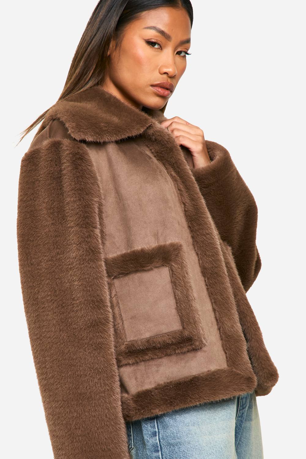 Womens Faux Fur Bonded Short Jacket - Brown - 10, Brown