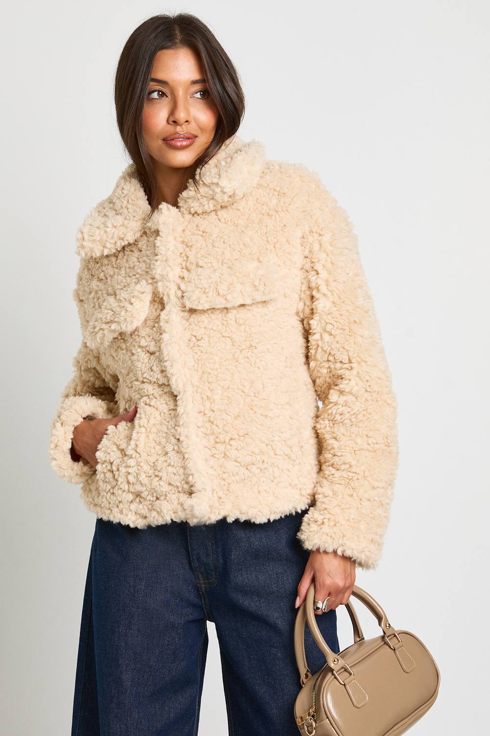 Womens Teddy Faux Fur Trucker Jacket - Brown - 10, Brown