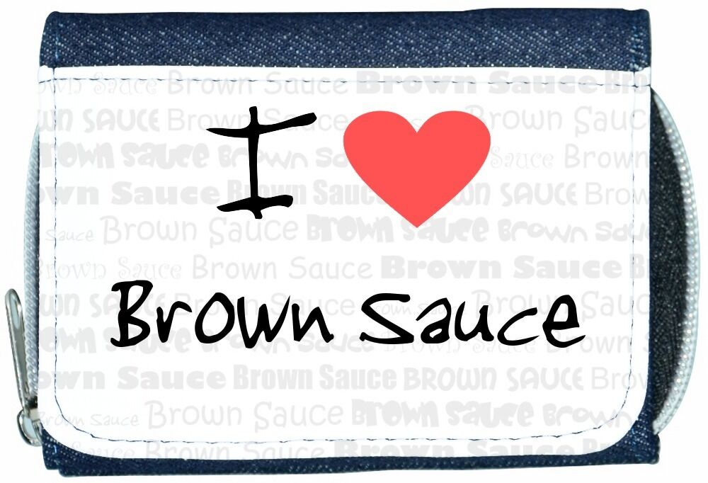I Love Heart Brown Sauce Denim Wallet