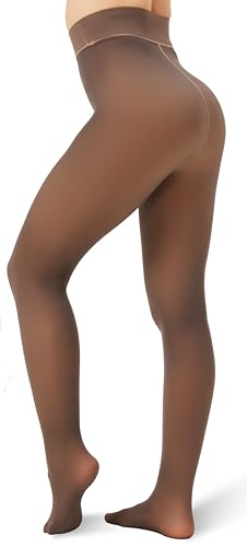 Viozocy Fleece Lined Thermal Tights for Women Ultra Warm Winter Brown Fake Translucent 220g Pantyhose High Waist Thick Sheer Leggings(L, Brown)
