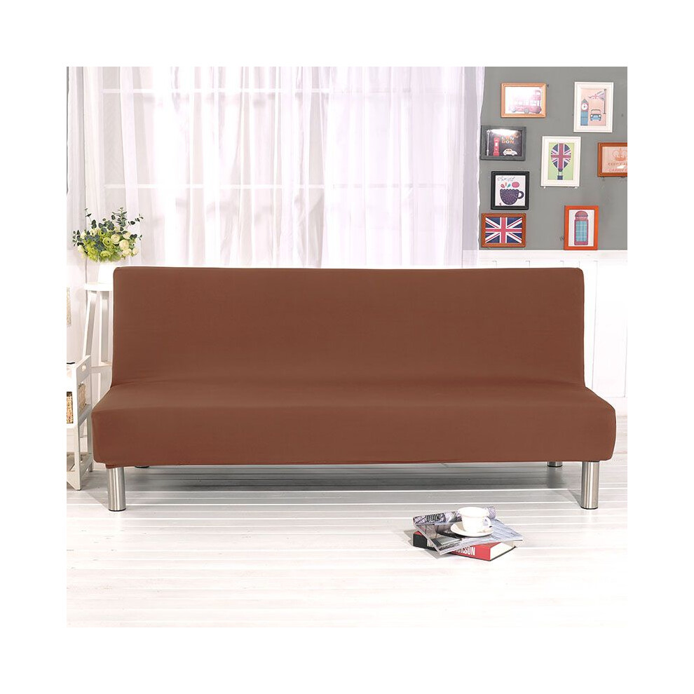 (Brown, Large) Sofa Bed Solid Cover Home Folding Armless Elastic Fabric Cover Replacement Futon