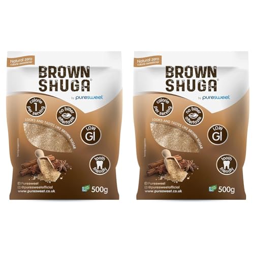 Brown Shuga® by Puresweet 500g, Natural Brown Sugar Alternative, No Bitter Aftertaste, Keto and Diabetic Friendly, Non GMO, Vegan, with Stevia. (Pack of 2)