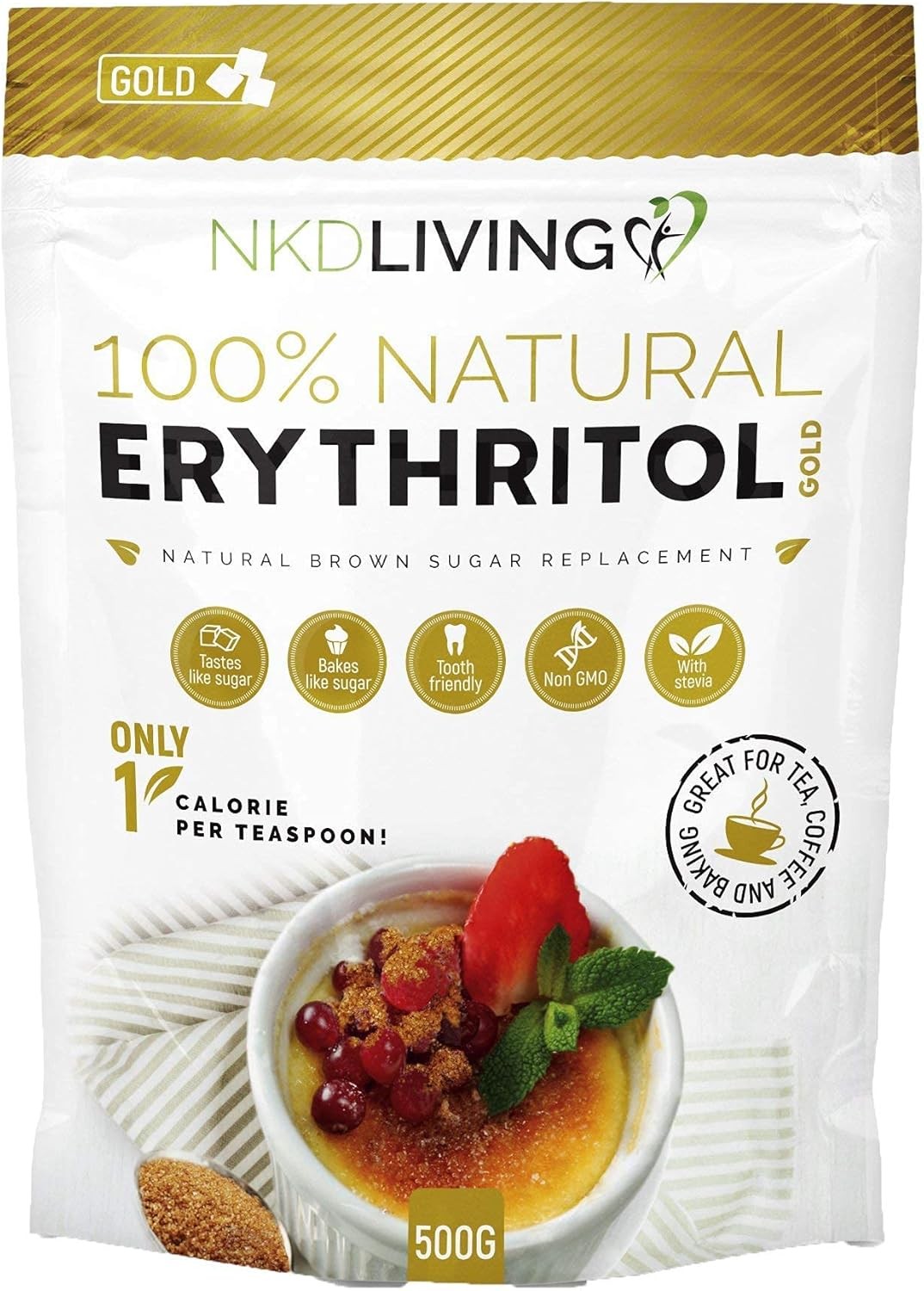 NKD Living Erythritol Gold 500g - Natural Brown Sugar Alternative with Stevia