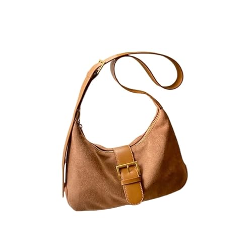 LXHZSY Brown Suede Bag Suede Leather Tote Single Shoulder Pack Everyday Crossbody Underarm Bag Women(Brown)