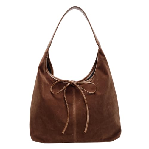 Myhozee Brown Suede Bag Handbag for Women - Large Totes Hobo Shoulder Bag Ladies Slouch Bags Womens Vintage Crossbody Bag Uni Bag for Shopping Work Daily Use