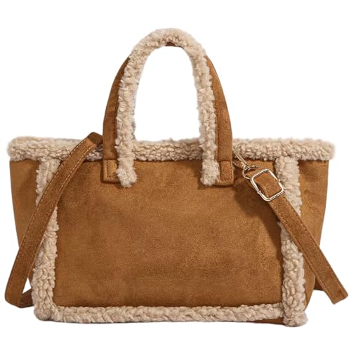Jorzer Brown Suede Bag with Fleece Large Capacity Vintage Suede Handbag with Strap Furry Bags for Women