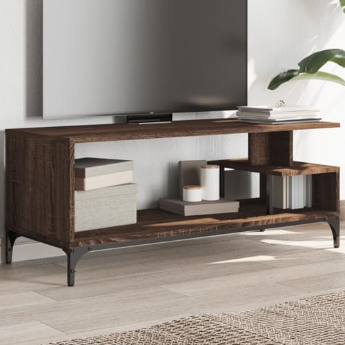 QJBSAVVA Brown Oak TV Stand 102x40x41 cm Industrial Media Console with Powder-coated Steel Frame, 90 kg Load, for Living Room or Bedroom