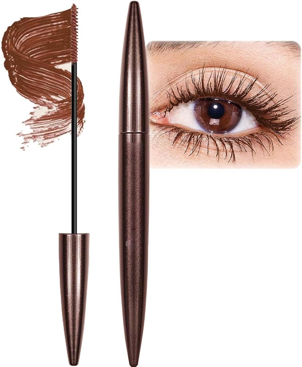 5D Silk Fiber Eyelash Mascara, Brown Volume Mascara with Soft Mascaras Brush, Long-Lasting Waterproof No Smudge Mascaras with False Lash Effect