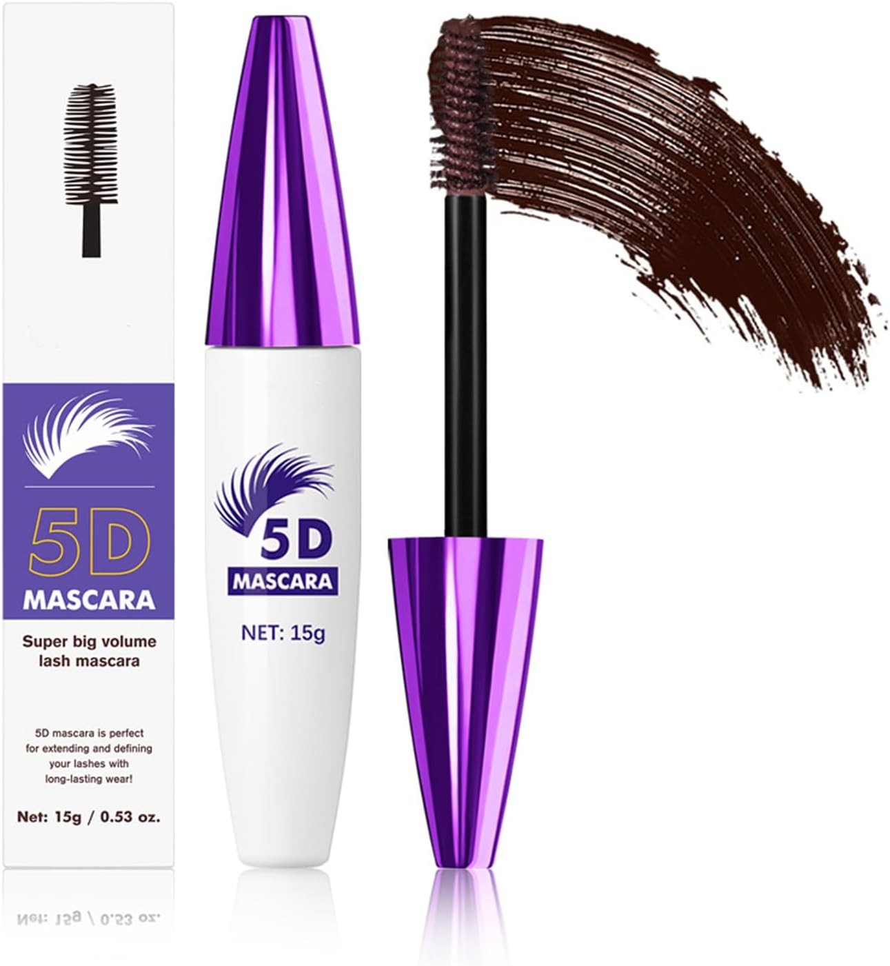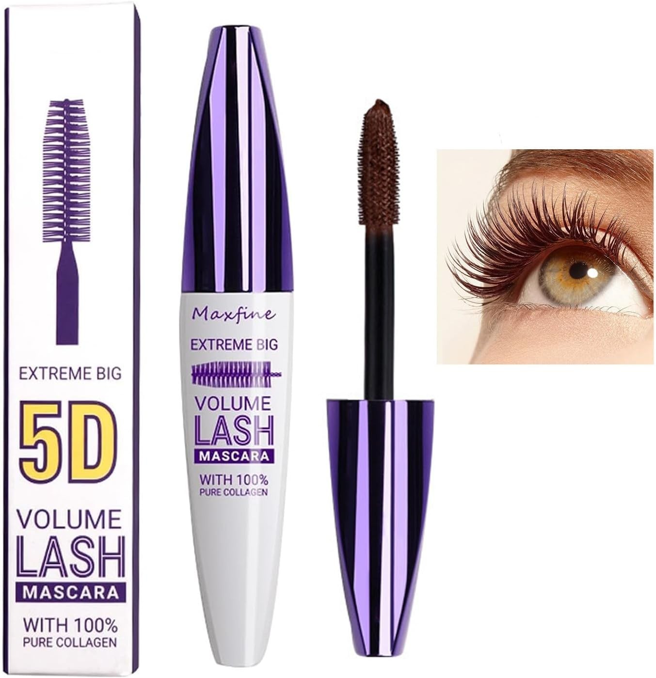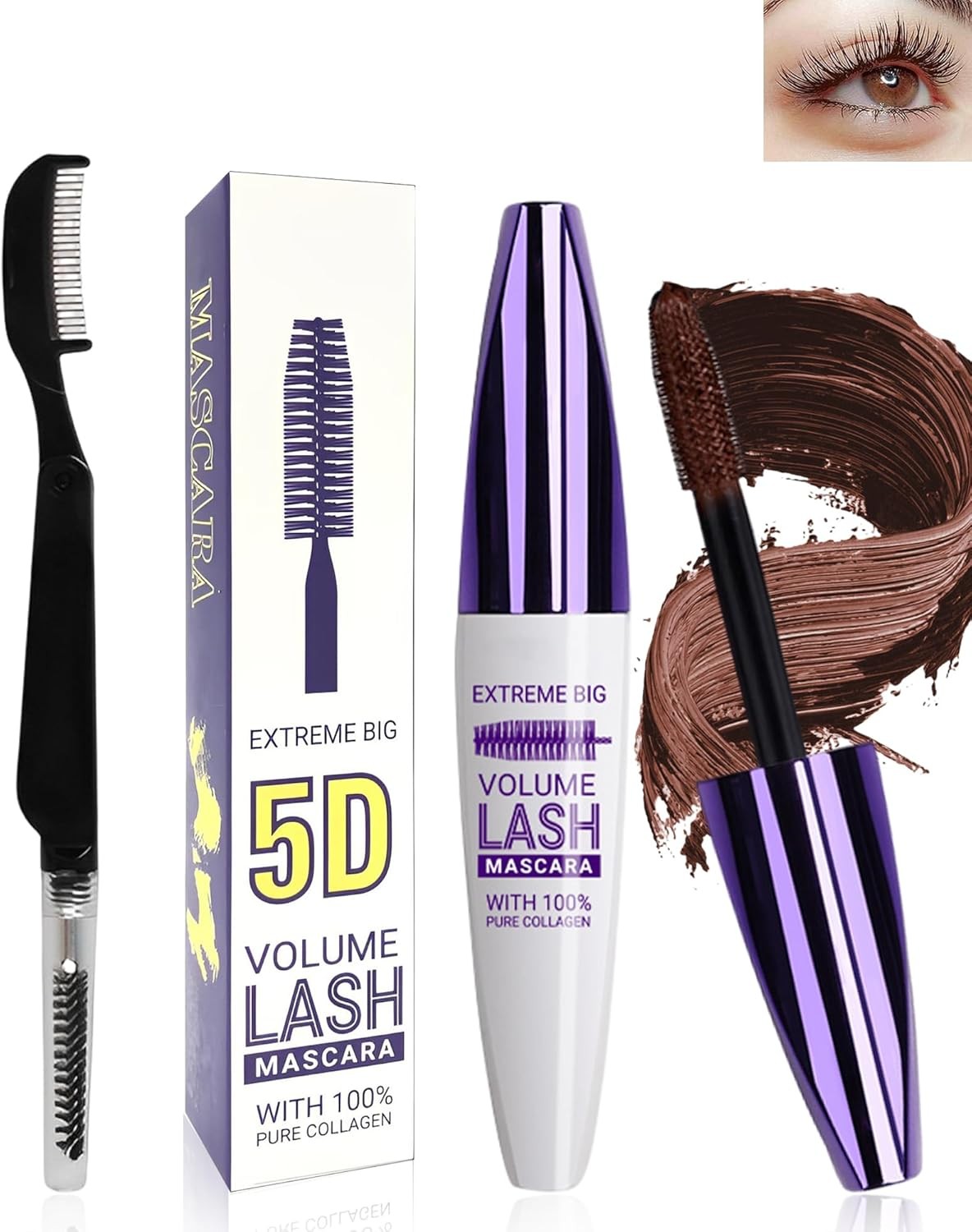 5D Brown Silk Fiber Eyelashes Mascara Waterproof with Eyelash Comb Brush, Water