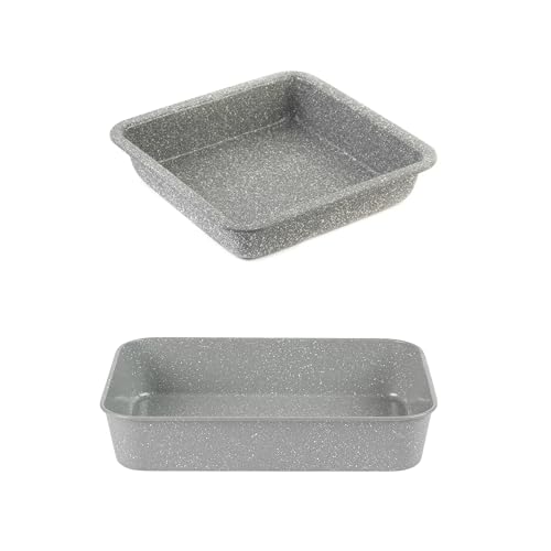 Salter Bundle With Roasting Tin & Square Pan, Deep Baking Tray Set, Carbon Steel Ovenware, Non-Stick, Kitchen Bakeware Set, Roaster, Brownie Cake Tin, Marblestone Collection, Grey Marble
