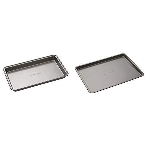 MasterClass Baking Tray, Non-Stick, Brownie Tin, Oven Tray for Traybakes, Carbon Steel, 34 x 20 cm, Grey & Baking Tray, Non-Stick Oven Tray for Baking and Roasting, Carbon Steel, 24 x 18cm, Grey