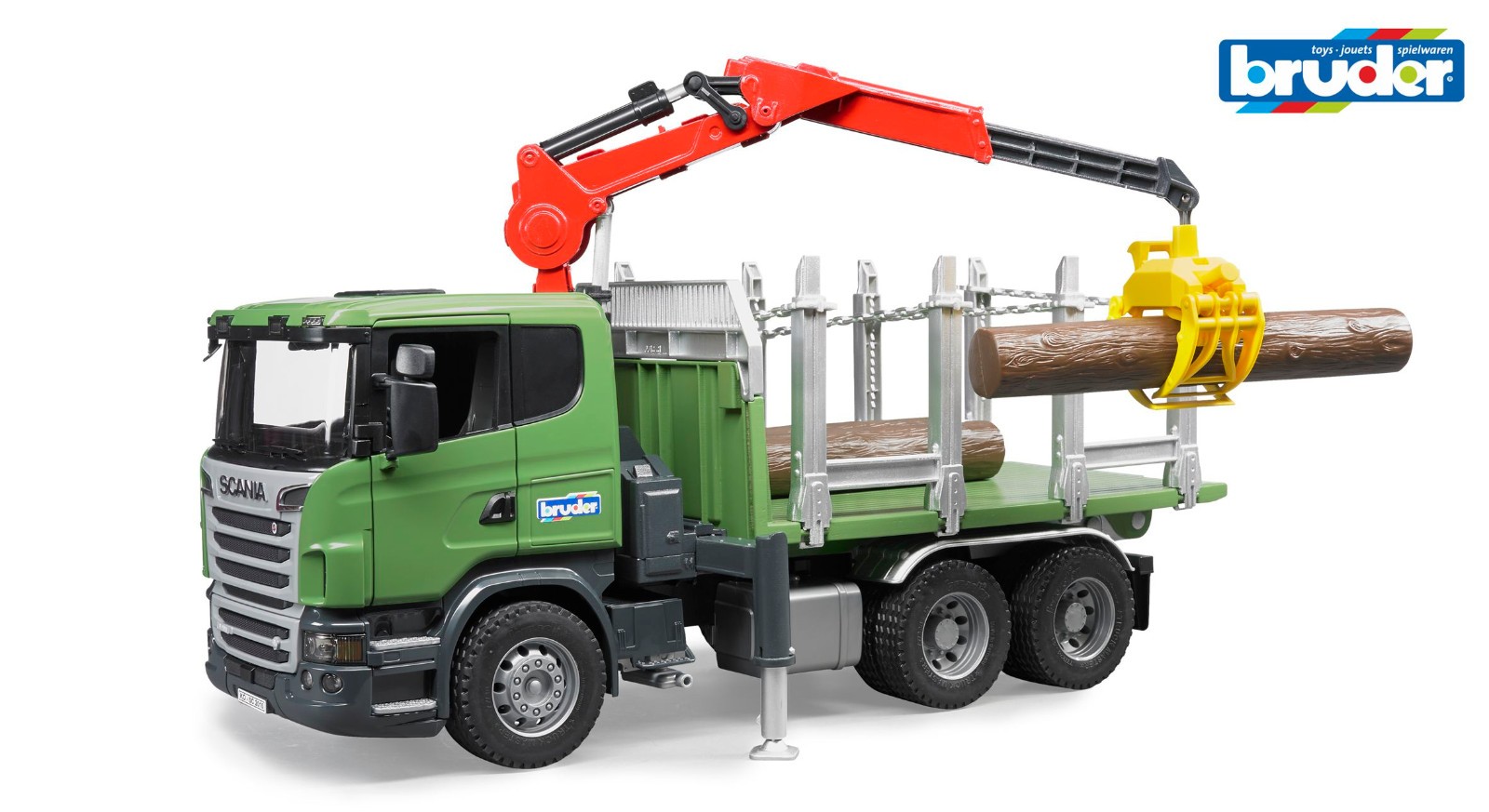 Bruder 03524 Scania R-Series Timber Truck with Loading Crane & 3 Trunks forestry