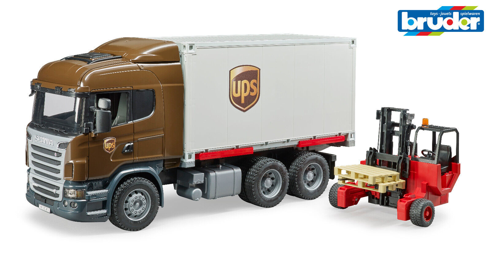 Bruder 03581 Scania R-Series UPS Logistics Truck with Forklift 1:16 scale toy