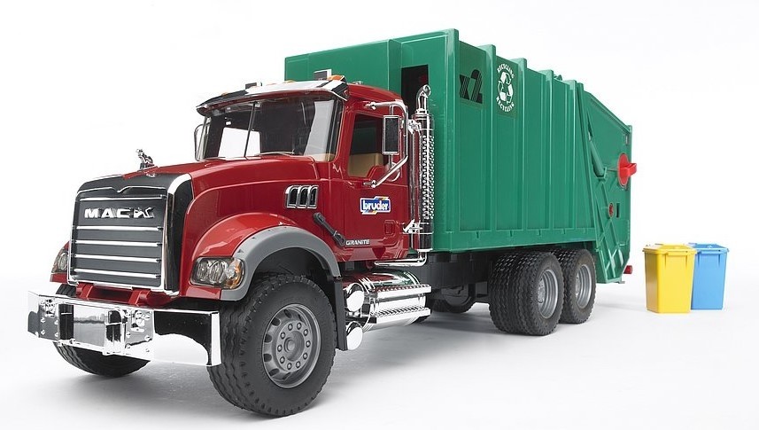 BRUDER - Refuse truck with 2 dustbins MACK - 1/16 - BRU2812