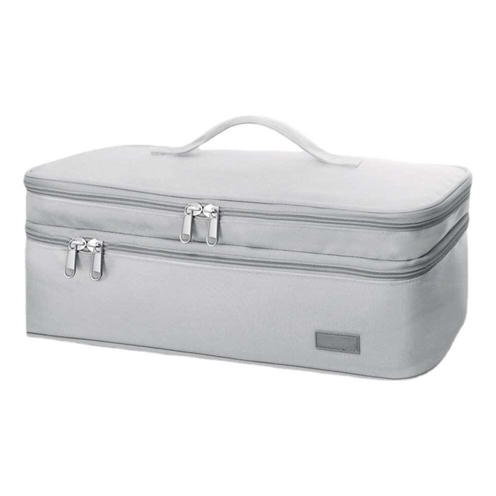 Hair Brush Bag Double Layer Heat Resistant Storage Case For Curling Iron, Paddle Brush Holder And Hair Dryer Travel Grey
