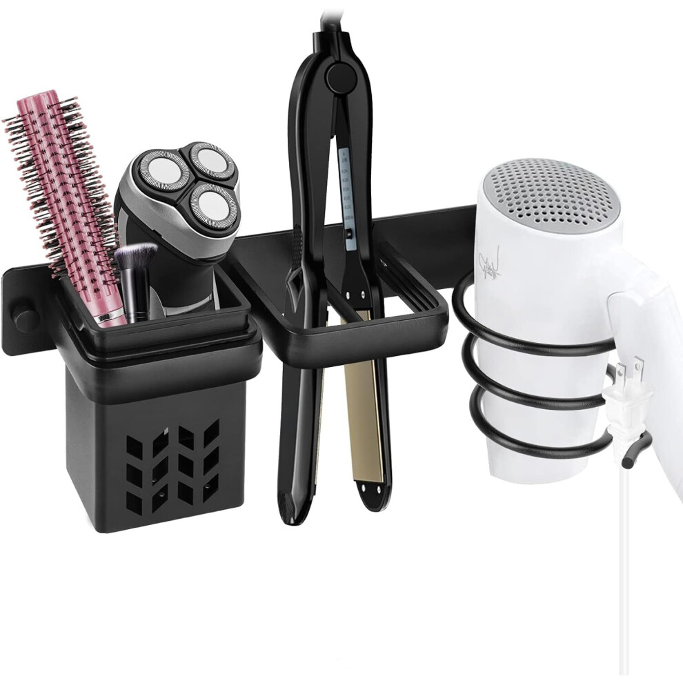 Hair Dryer Holder Wall Mounted Hair Dryer Holder Hair Dryer and Straightener Holder for Storage Hair Brush Hair Dryer Straightener | Black