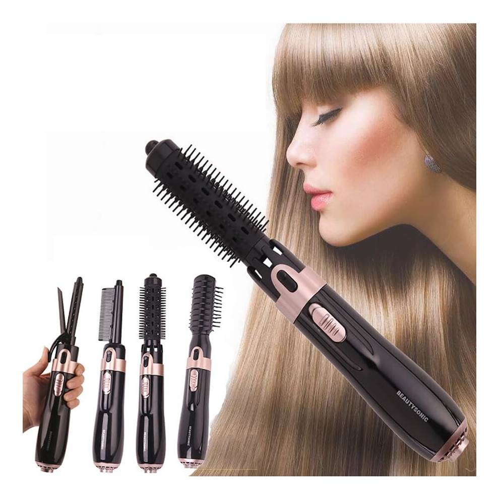 3 in 1 Hot Air Brush and Rotating Hair Dryer with Interchangeable Heads for Curling and Straightening