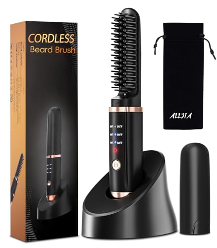 Cordless Beard Straightener for Men, 30s Quick Heat 5000mAh Rechargeable Beard Brush Hair Dryer with 3 Temp. (max 200°), Electric Facial Beard Styler Comb for Business Travel, Auto-Off and Anti-Scald