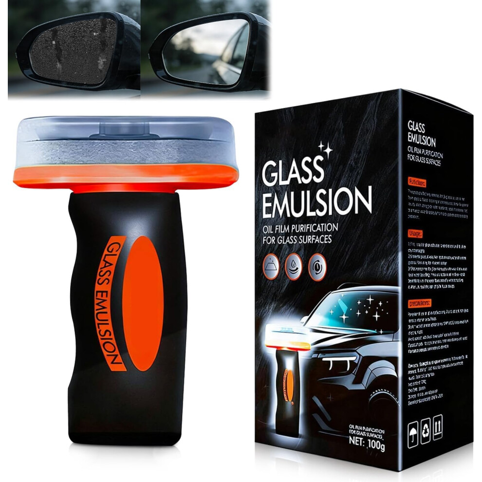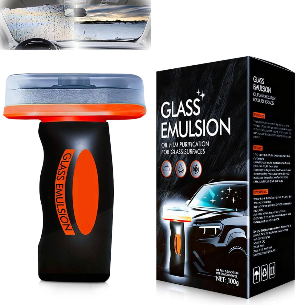 Dandin Hand-Held Glass Emulsion Cleaner, Car Glass Cleaner with Oil Film Cleaning Brush, Car Window Cleaner,Glasses Cleaning Board for Windows, Mirro
