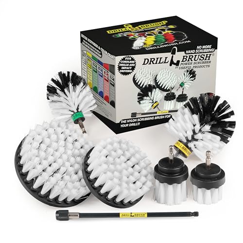 Drill Brush Power Scrubber by Useful Products – Drillbrush Soft White Automotive Cleaning kit with Extended Reach Attachment – Drill Bit Extension Carpet Cleaner Solution – Car Interior Brush Set