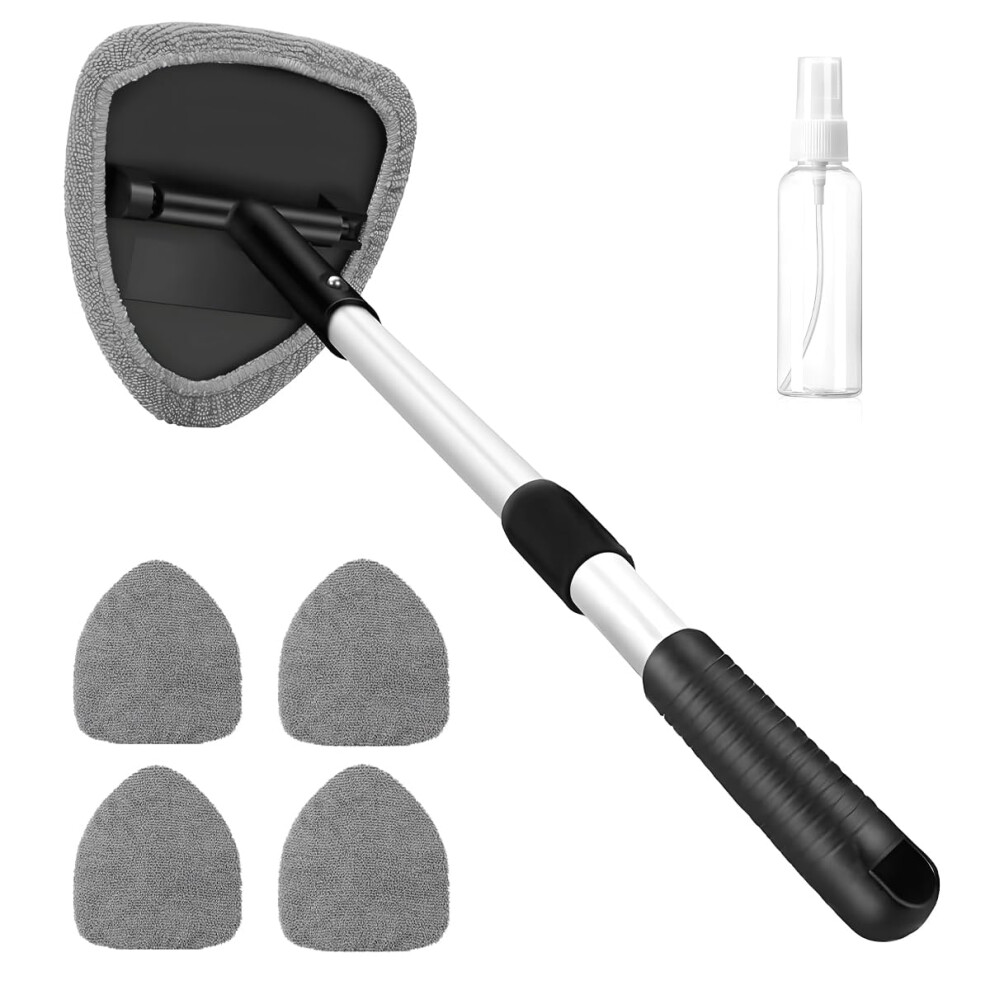 Suevut Car Wash Brush, Car Windscreen Cleaner Tool, Includes 1 Extendable Handle, 3 Reusable Microfiber Pads, and 1 Spray Bottle, Suitable for Cleani