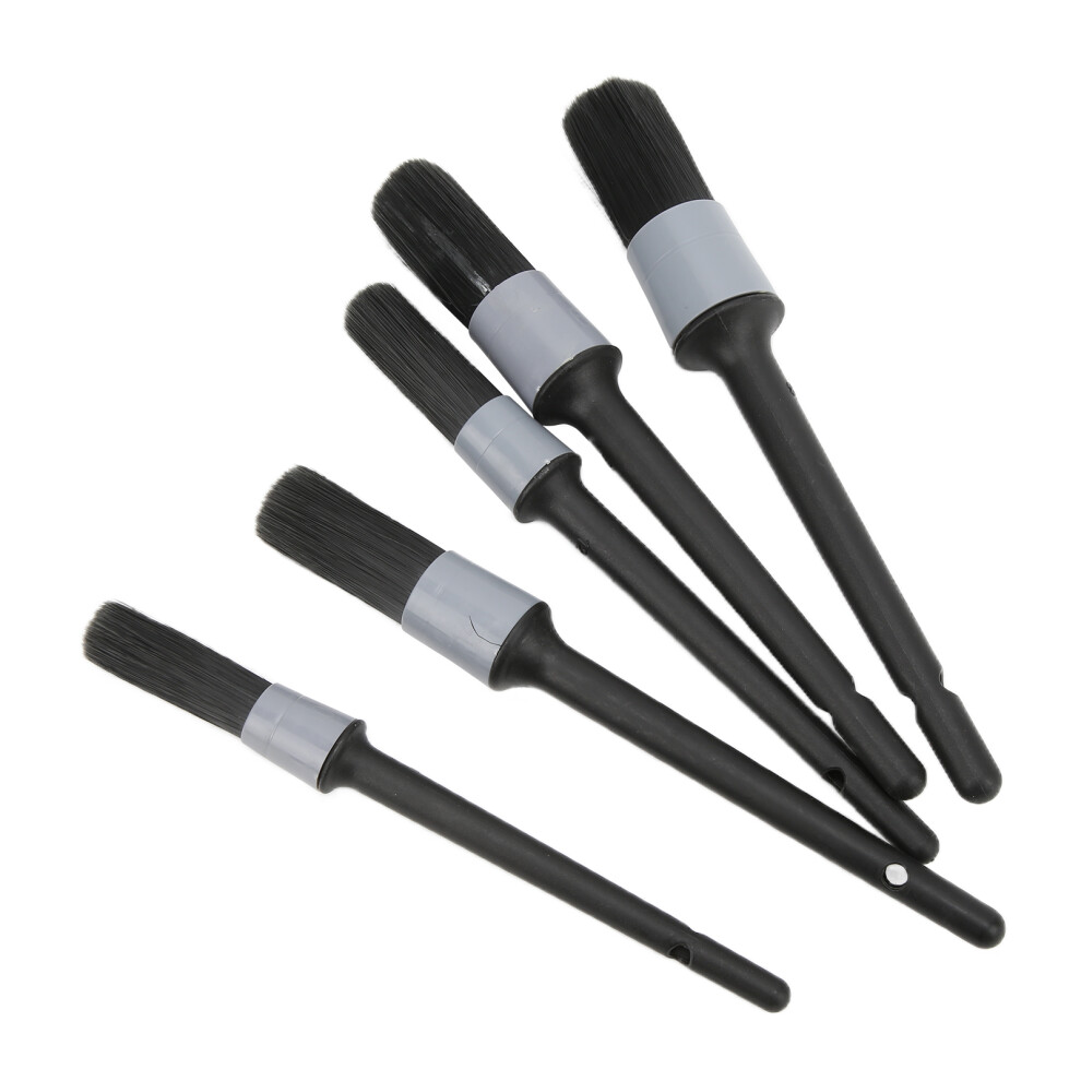 5pcs Auto Detailing Brush Set for Cleaning Car Interior Exterior Engine Exhaust Leather SeatBlack Grey