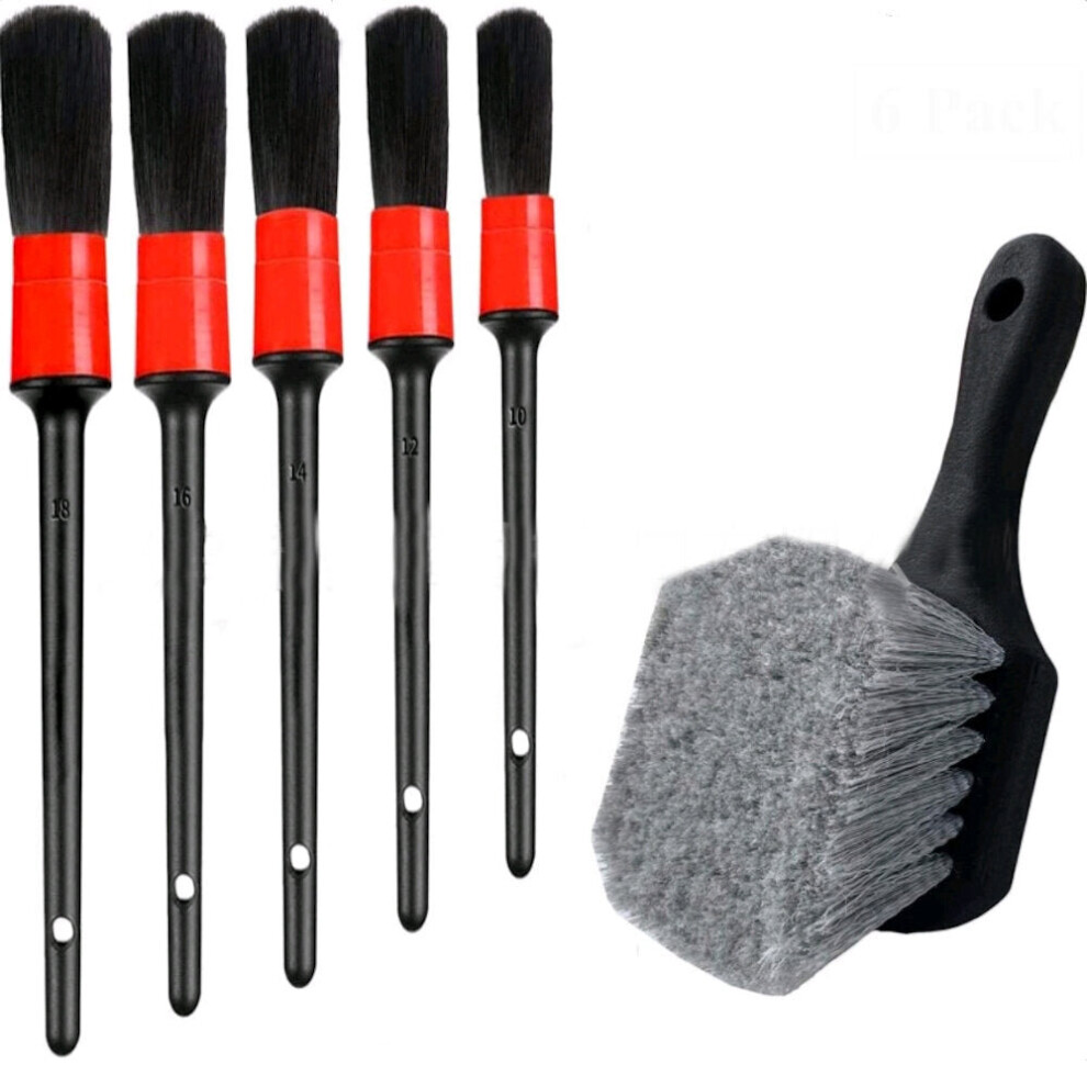6pcs Short-handled Tire Brush Detail Brush Crevice Cleaning Brush Bristle Brush Set for Car Cleaning