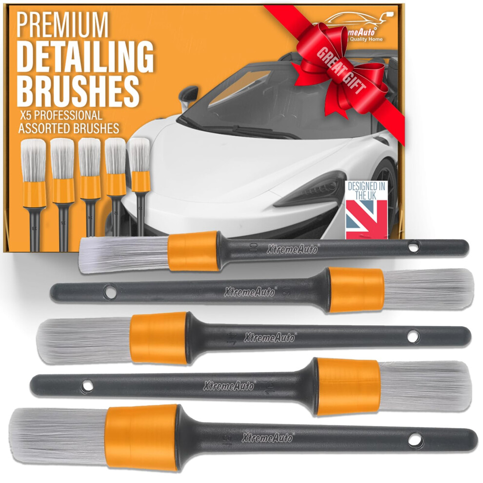 Xtremeauto Car Detailing Brushes Set - 5pc Professional Detailing Brushes, Ultra Soft Brush, Non Scratch For Cleaning Car Interior & Wheels, Delicate Valeting Interior Detail Brushes Alloy Wheels