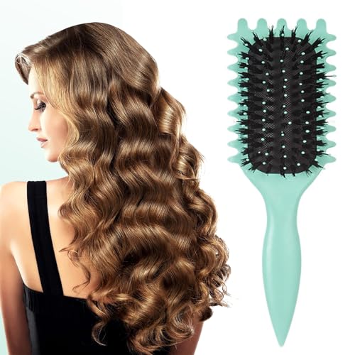 Urbeokr Curl Defining Brush - Newest Boar Bristle Styling Brush for Curly Hair, Shapes & Defines Curls (Green, 1PCS)