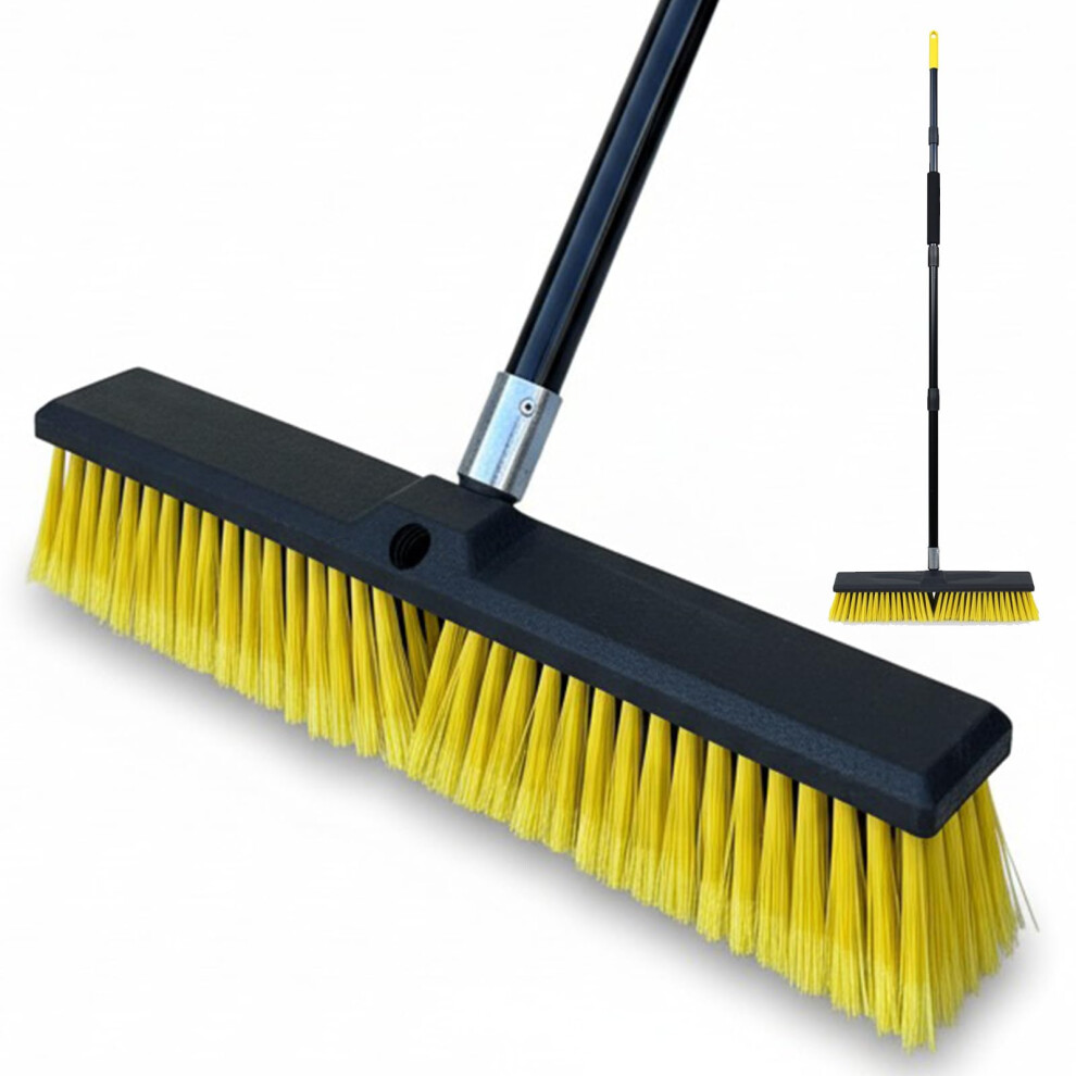 LSC 18'' Commercial Garden Broom Outdoor Heavy Duty Yard Brush with Long Stainless Steel Handle & Stiff Bristles Sweeping Brush for Driveway Patio Deck Warehouse Lawn & Garage
