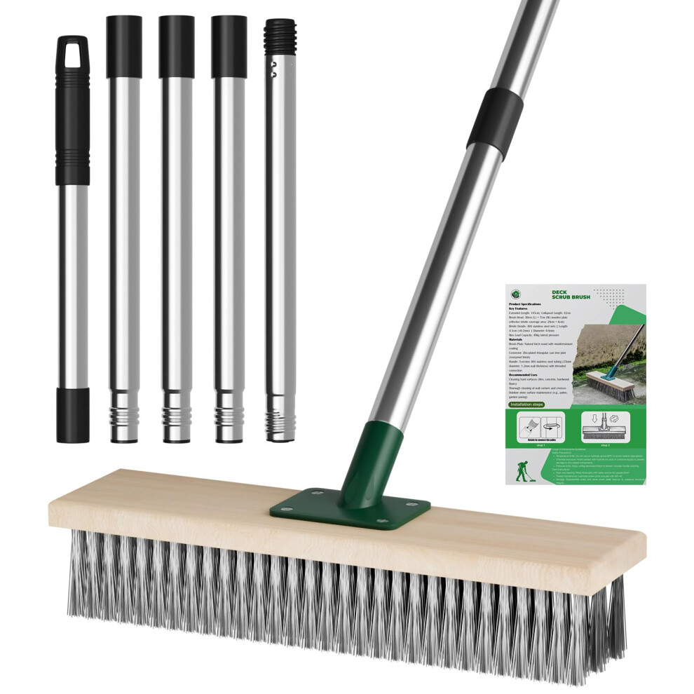 Outdoor Cement Floor Brush Stainless Steel Wire Scrubber Detachable Tube Heavy Duty Cleaning Brush for Concrete Patio