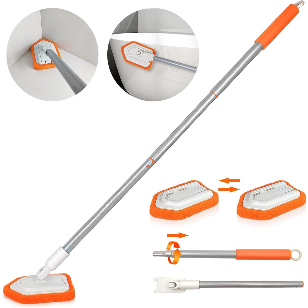 JEHONN Bathroom Cleaning & Scrubbing Brush with Telescopic Handle Shower Scrubber 2 PCS Interchangeable Sponge Head for Bathtub Floor Wall Glass Sink