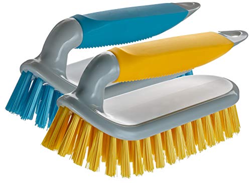 NCaan 2pk Deluxe Hand Scrubbing Brush Heavy Duty with Stiff Bristles & Non-Slip Soft Grip Handle-Household Cleaning Brush for Indoor & Outdoor, Bathroom, Kitchen, Carpet, Floor, Bath,Car (Assorted, 2)