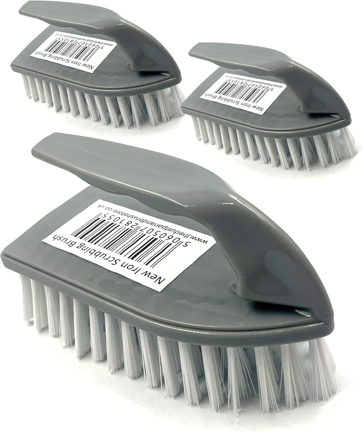 3pk Plastic Scrubbing Brush Floor Cleaning Hand Tools With Stiff Nylon Bristles Mould, Limescale and Grout Remover Ergonomic and Heavy Duty Cleaning Products For Home and Commercial Use