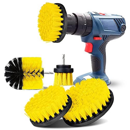YIHATA Drill Brush Cleaning Brushes Set, 4 Pack Drill Scrubbing Brushes for Cleaning Attachment Set, Great for Car Carpet Floor Bathroom Toilet Tub Kitchen Marble Ceramic Surface Yellow