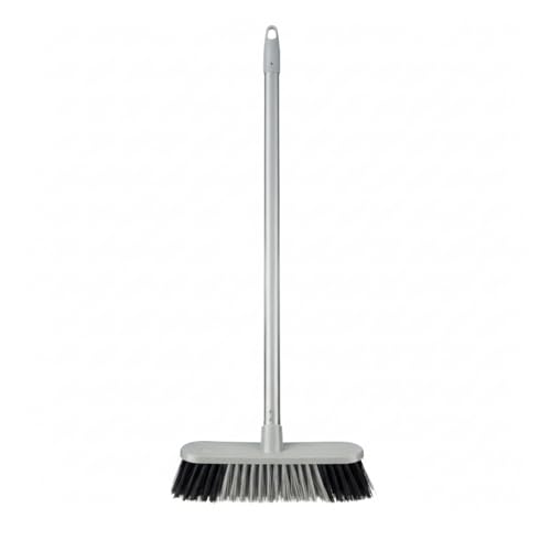 HOMESHOPA Indoor Broom Soft Bristle Sweeping Brush with Handle, Round Edge Brush Head Silver Long Handled Floor Scrubbing Brush Broom for Kitchen, Bathroom, Household Cleaning