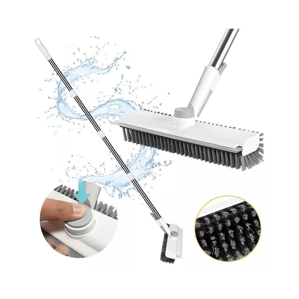 Long-handled floor scrubbing brush with adjustable long handle, squeegee and bristles 2 in 1 for cleaning kitchens, bathrooms, tiles, garages, walls