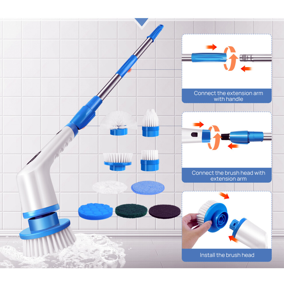 (Blue+White) Electric Spin Scrubber, Cordless Floor Scrubbing Brush,Electric Cleaning Brush, Strong Motor for Bathroom Cleaner, Shower Cleaning tools